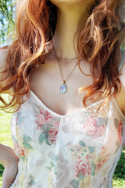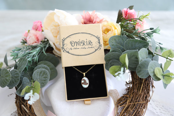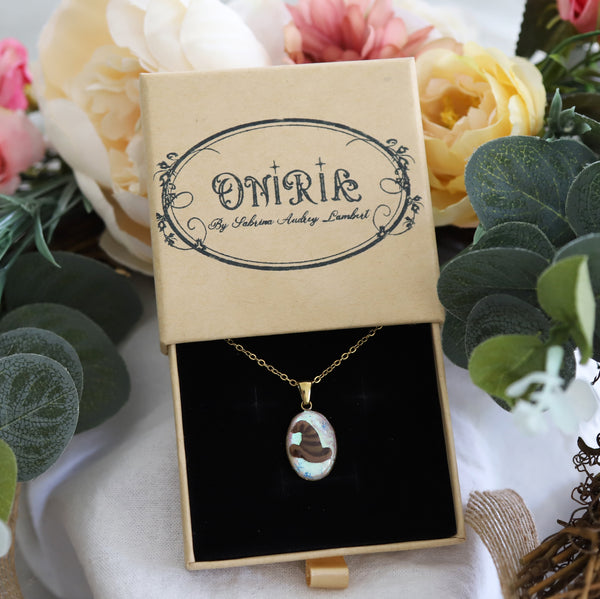 Le pendentif est recouvert d'un dôme de résine pour une protection optimale et un effet "verre bombé" vintage.